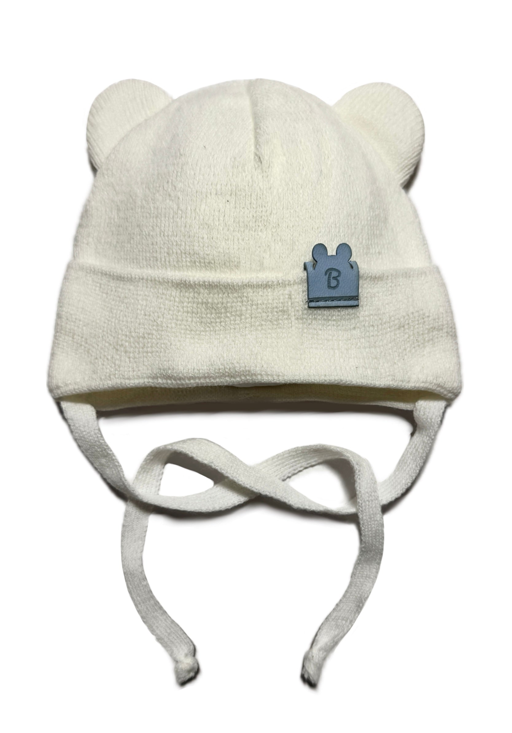 BABY BEAR - Ekrü Kötős Macifüles Kötött Fiú Sapka