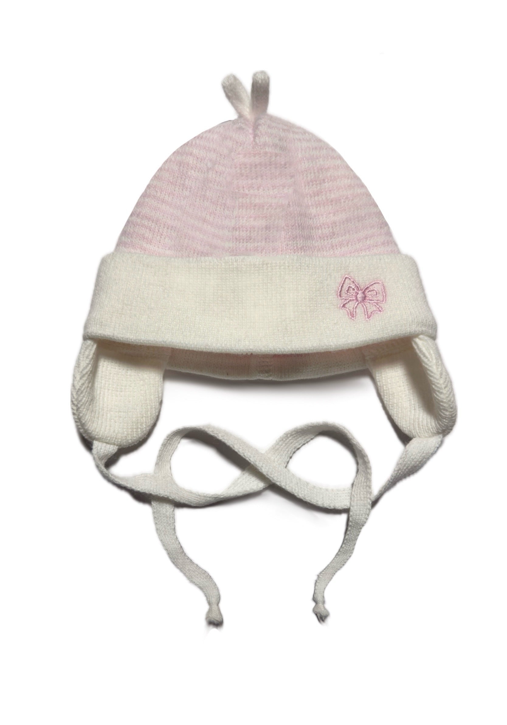 BABY BOW - Fehér-Babarózsaszín Kötős Masnis Kötött Lány Sapka