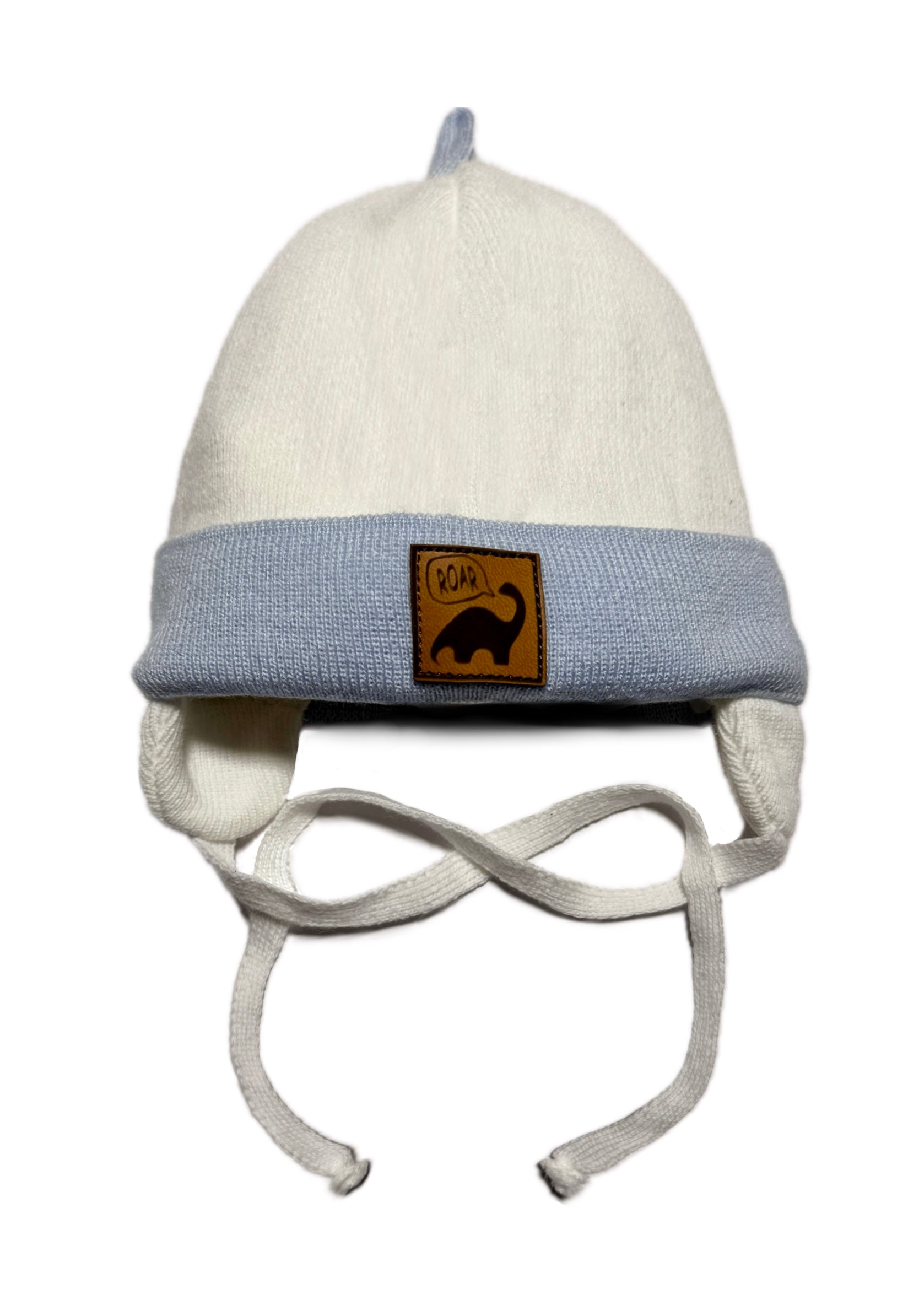 BABY ROAR - Ekrü-Kék Kötős Dínó Mintás Fiú Kötött Sapka