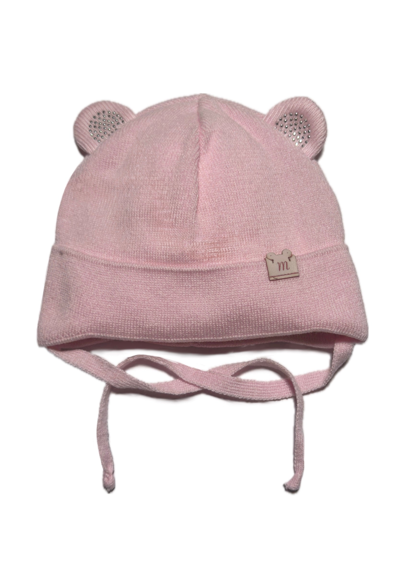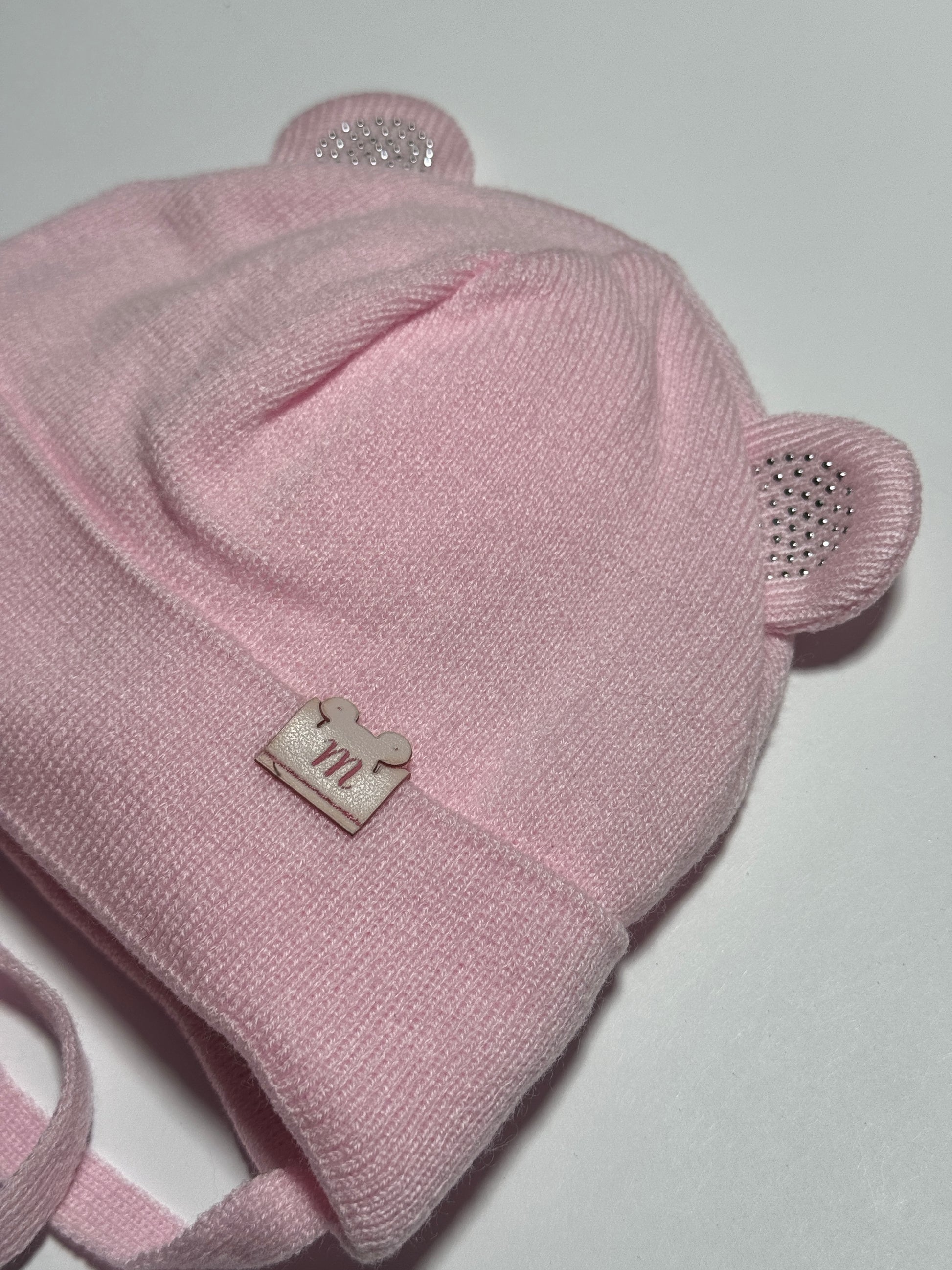 BEAR ME - Rózsaszín Kötős Strasszos Macifüles Kötött Lány Sapka