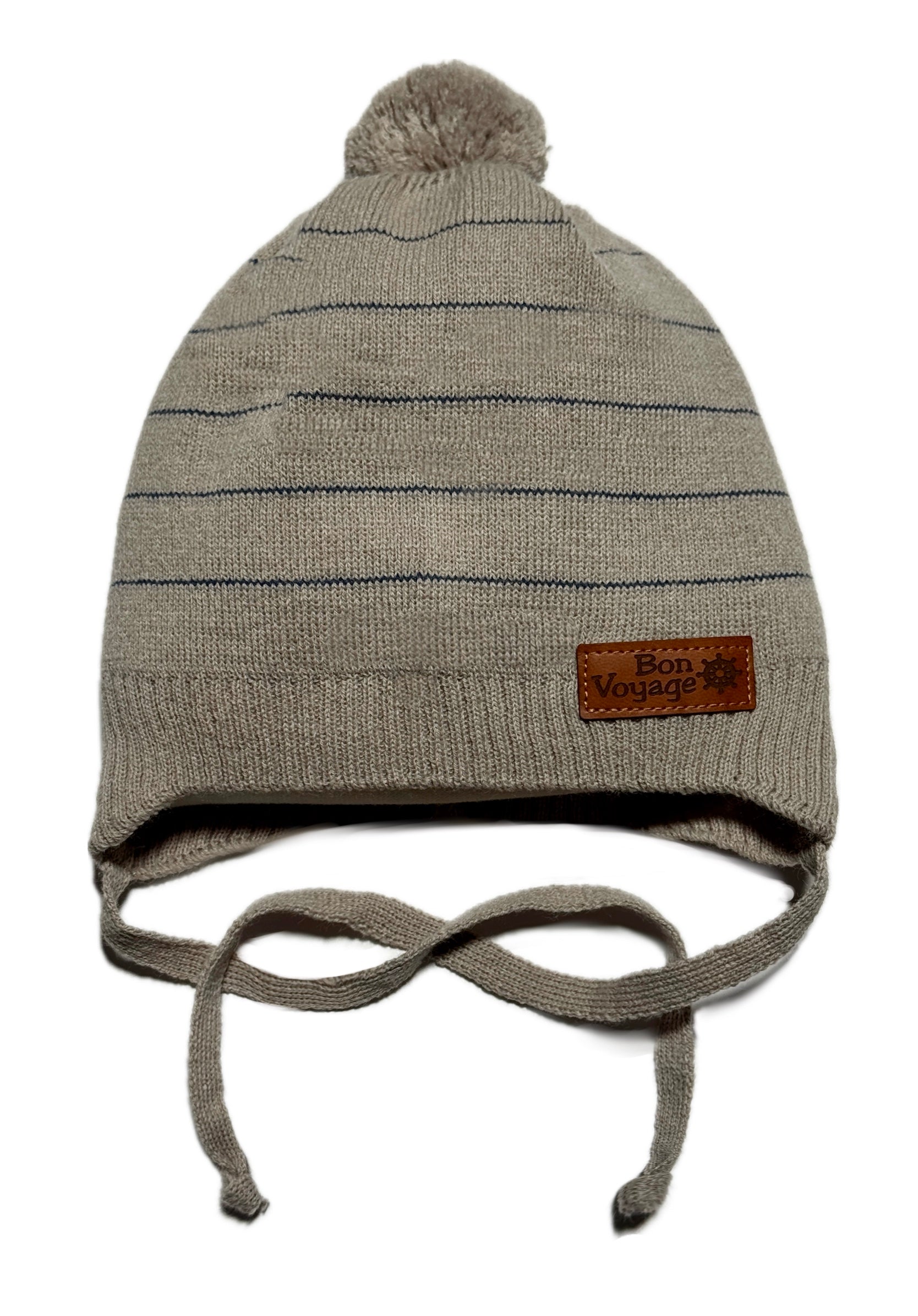 BON VOYAGE - Mogyoró Kötős Bőrdíszes Fiú Kötött Sapka