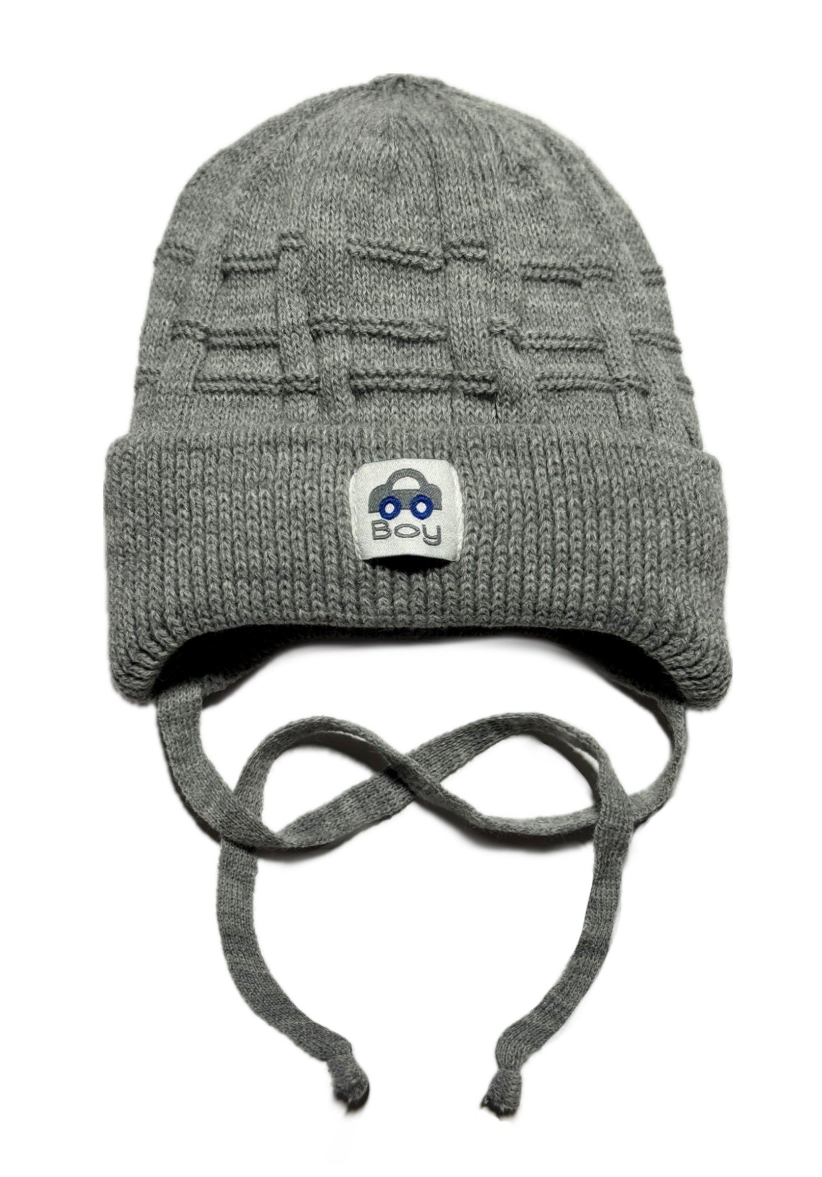 BOY - Szürke Kötős Autó Mintás Fiú Kötött Sapka