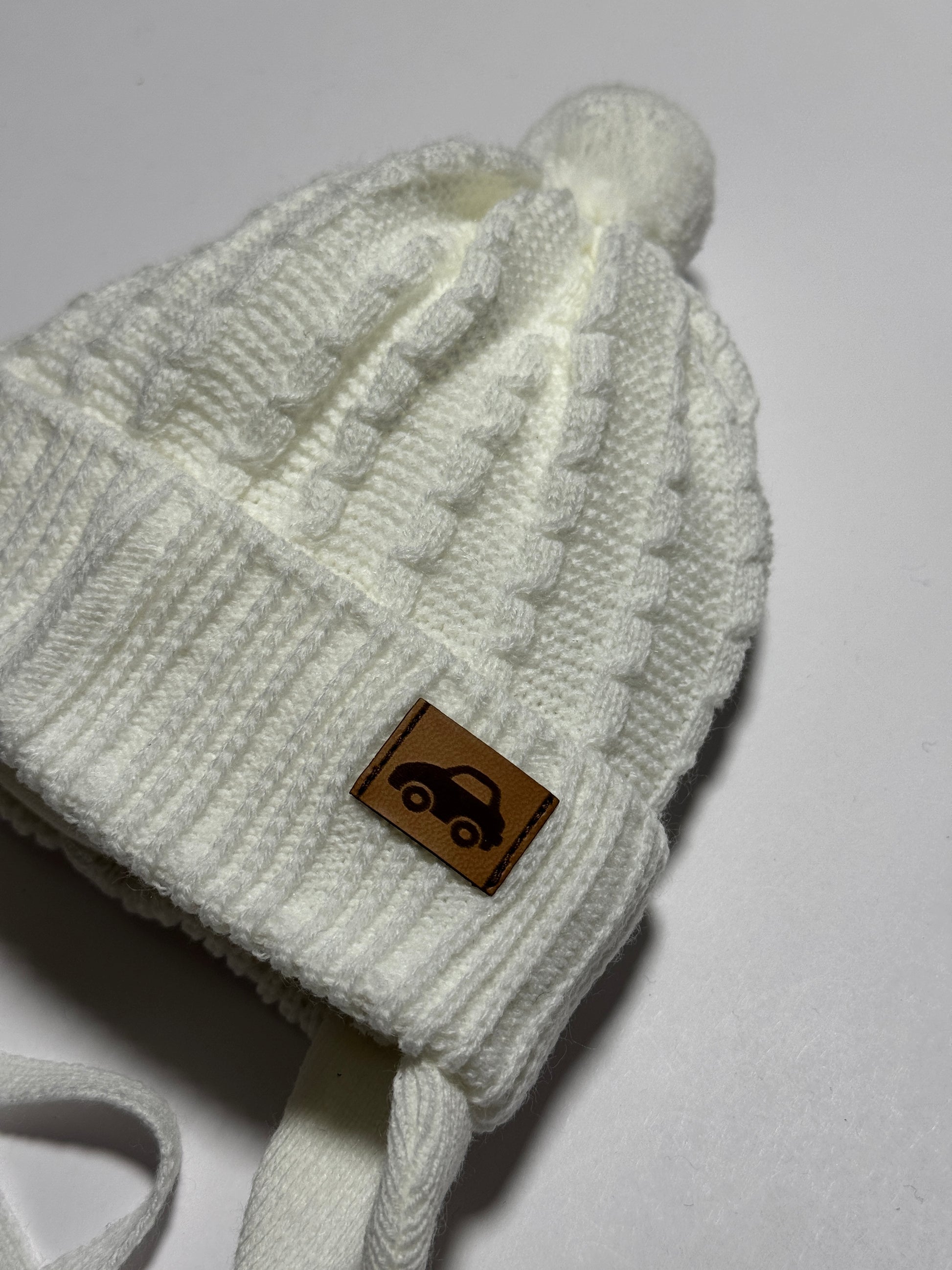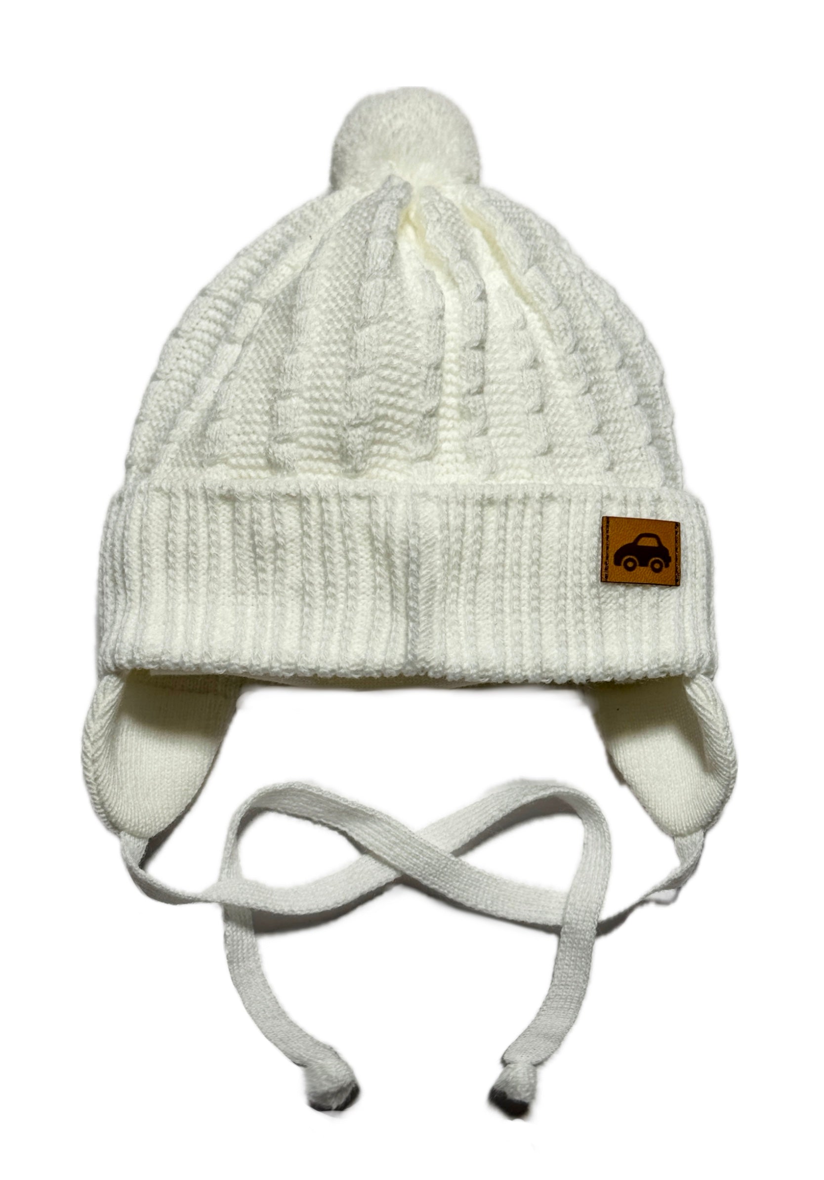 CAR FUN - Ekrü Pomopomos Kötős Autó Mintás Fiú Kötött Sapka