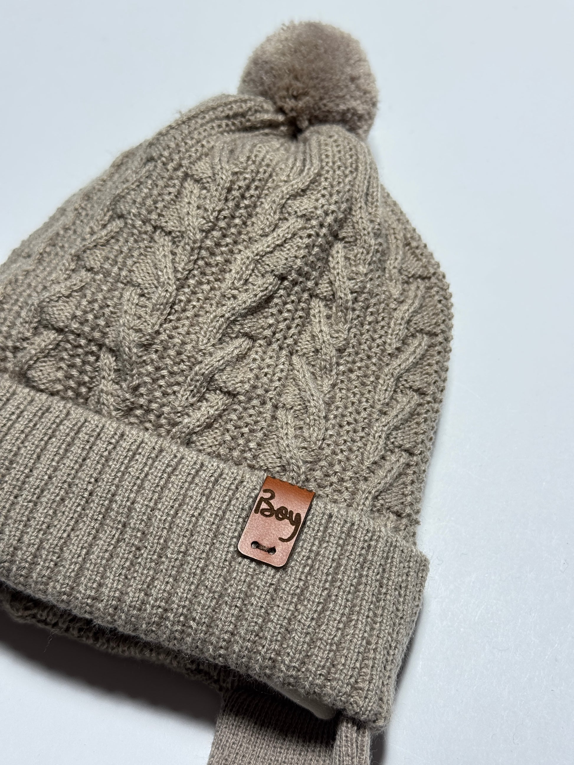 CLASSIC BOY - Mogyoró Kötős Bőrdíszes Fiú Kötött Sapka