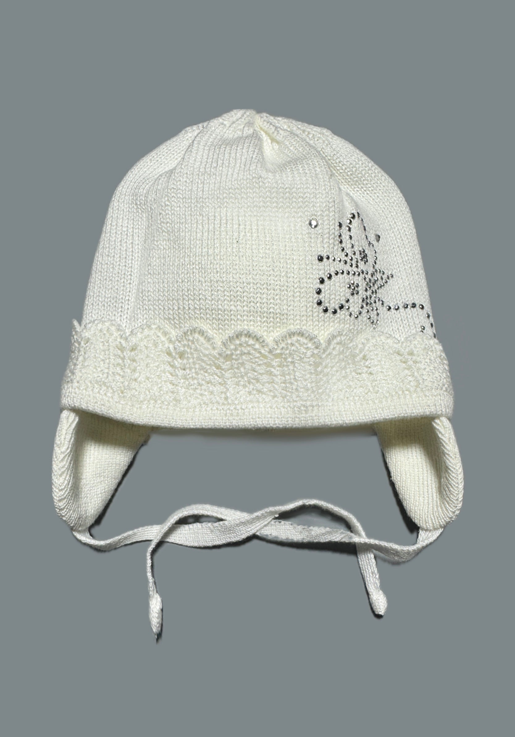 DIAMOND BUTTERFLY - Fehér Kötős Strassz Pillangós Kötött Lány Sapka