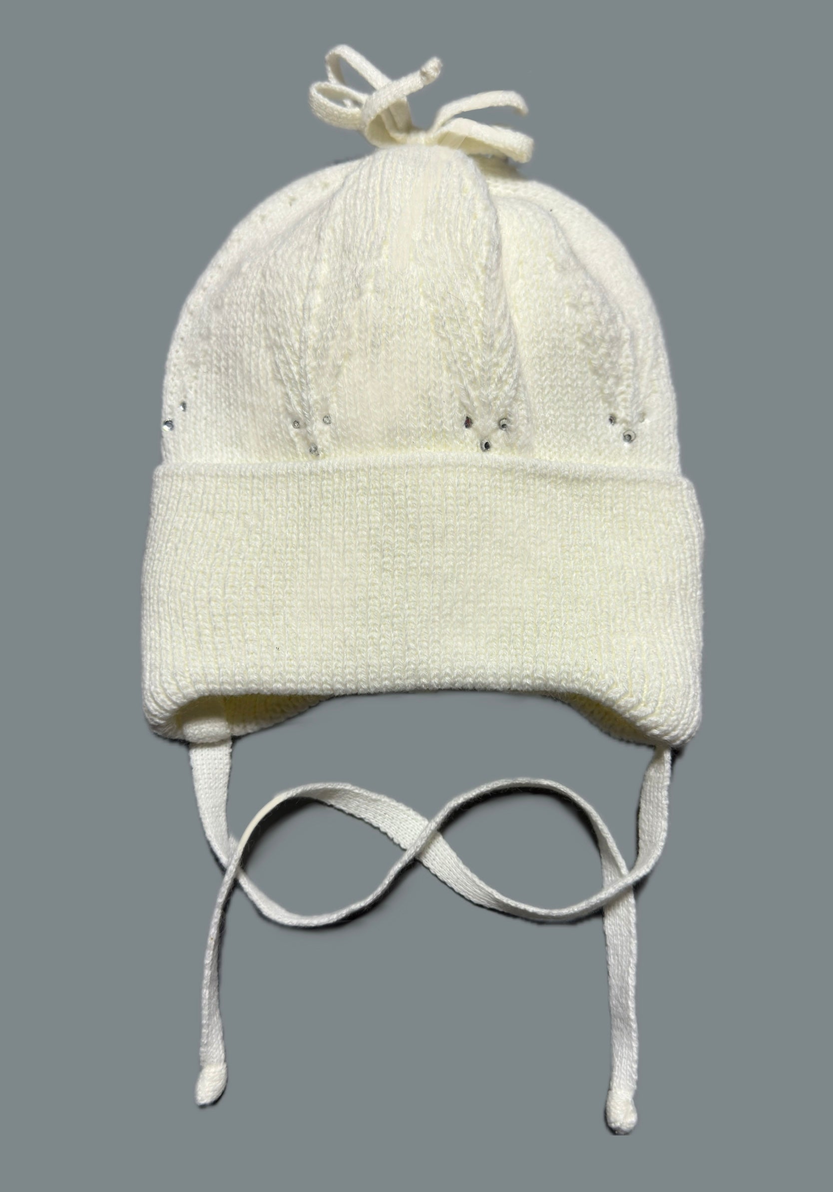 DIAMOND LIGHT BABY - Ekrü Kötős Strasszos Kötött Lány Sapka