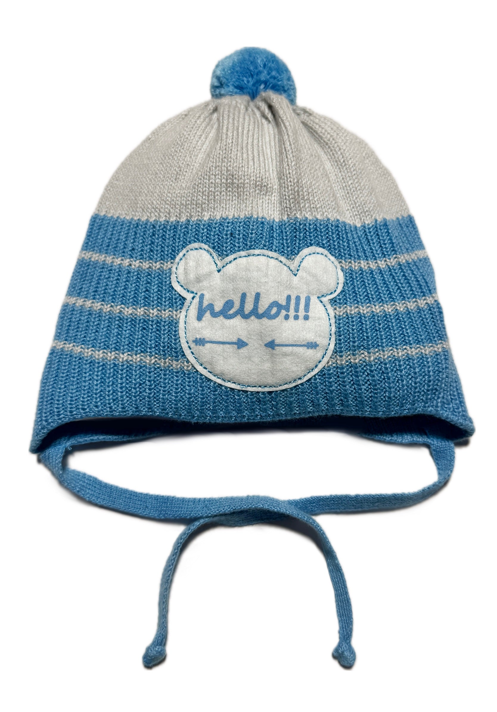 HELLO BEAR - Kék Csíkos Maci Mintás Kötős Fiú Kötött Sapka