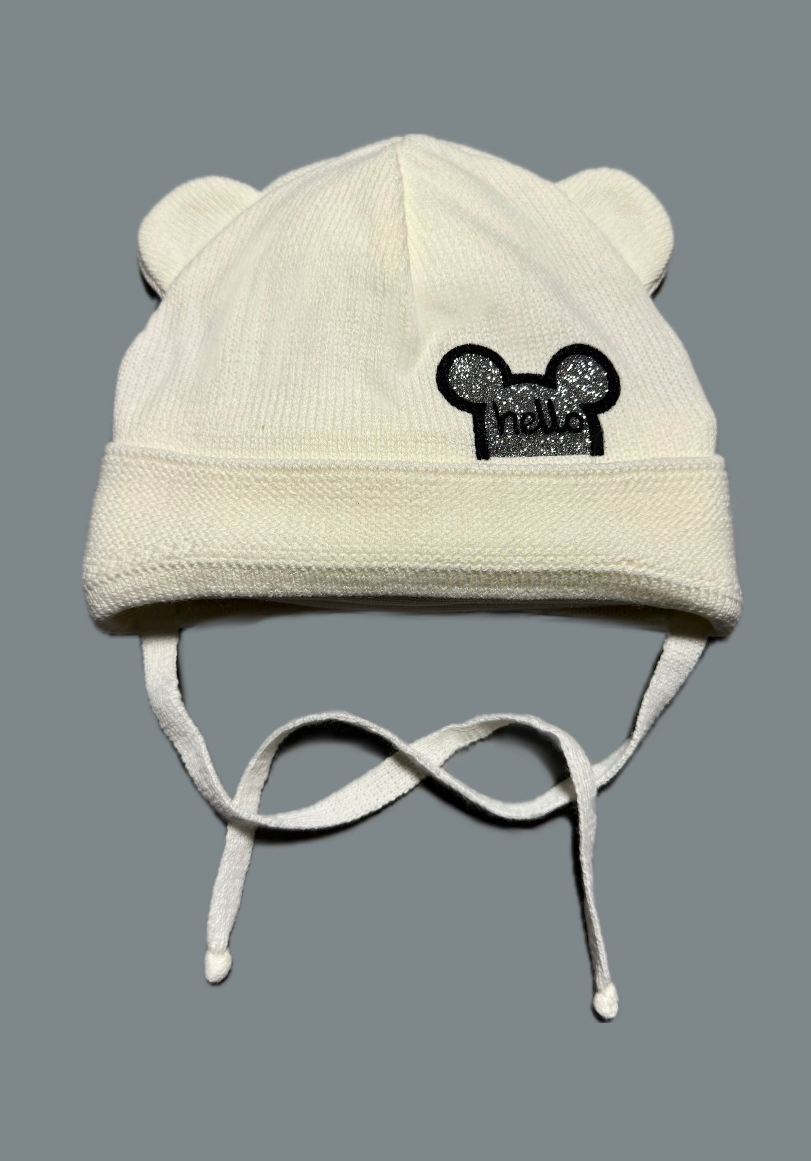 HELLO MINNIE - Ekrü Kötős Csillámos Egér Mintás Kötött Lány Sapka