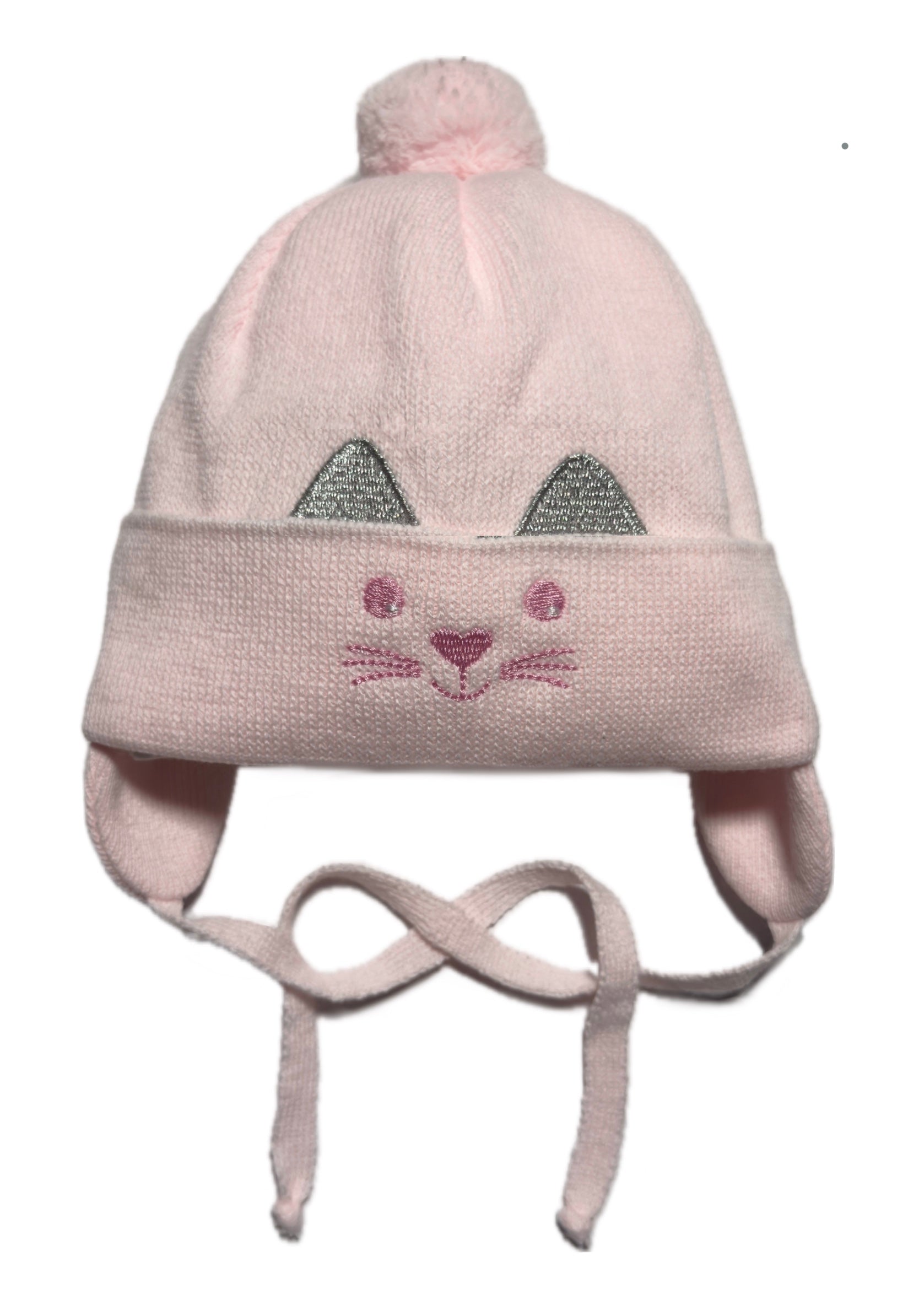 KITTEN SMILE - Rózsaszín Kötős Cica Mintás Kötött Lány Sapka