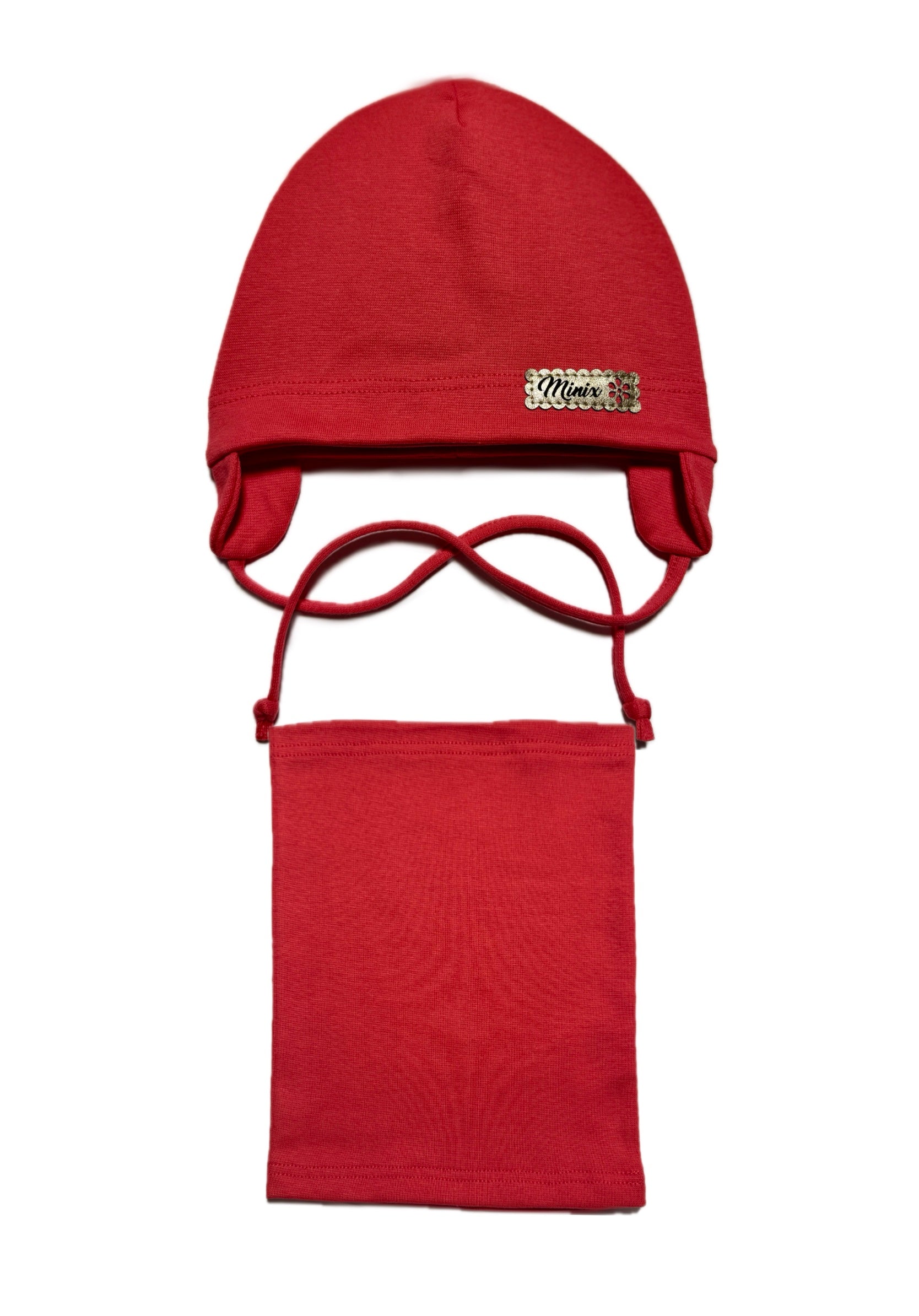 MINIX CLASSIC BABY SET - Piros Pamut Kötős Lány Sapka és Csősál Szett