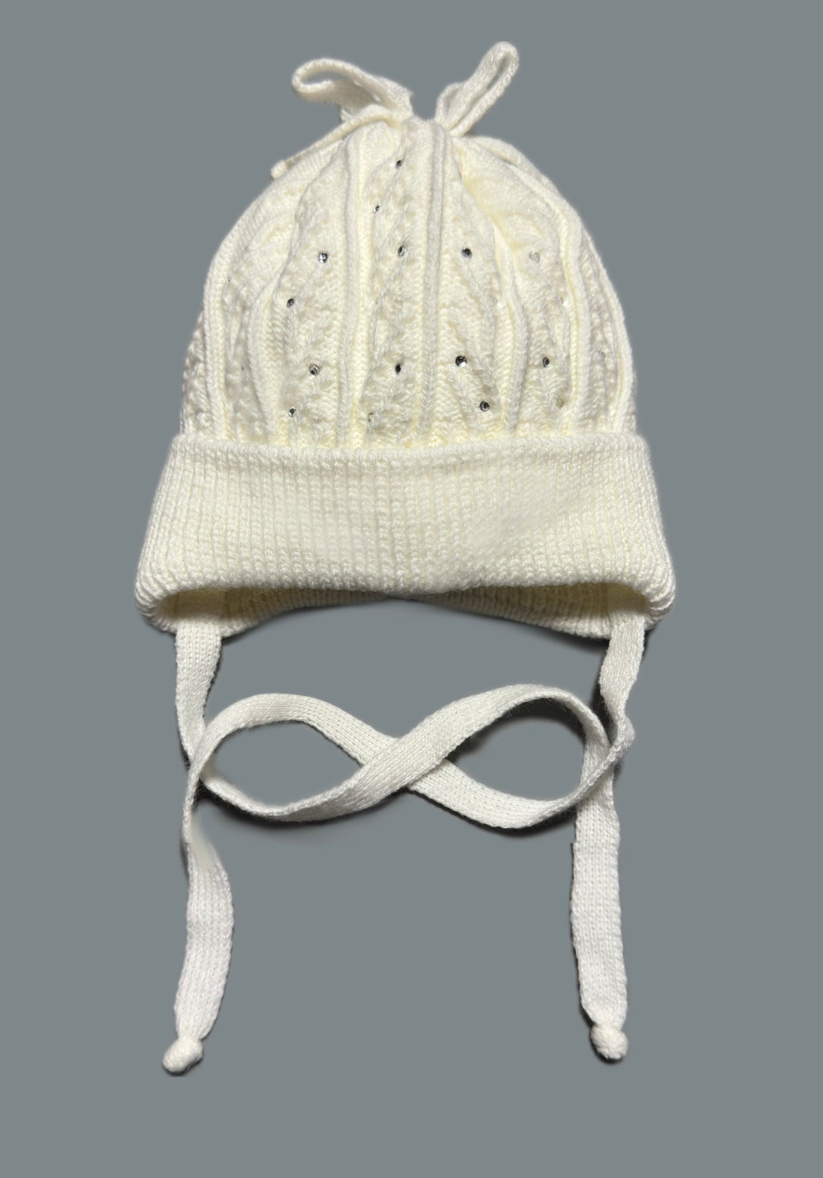 MINIX DIAMOND BABY - Ekrü Kötős Strasszos Kötött Lány Sapka