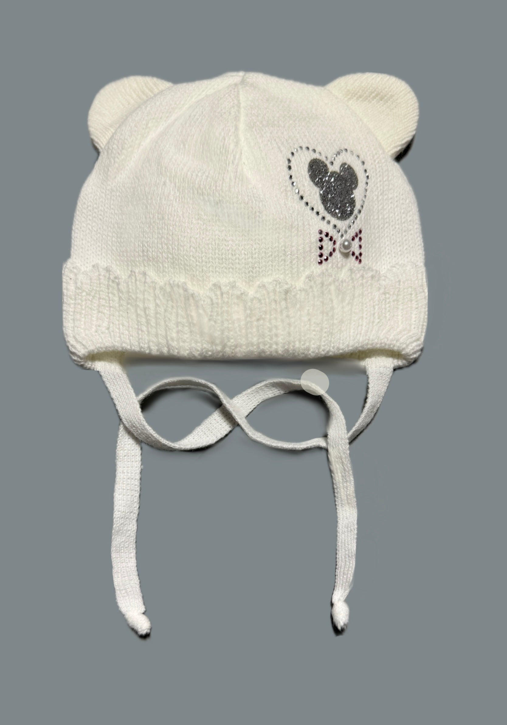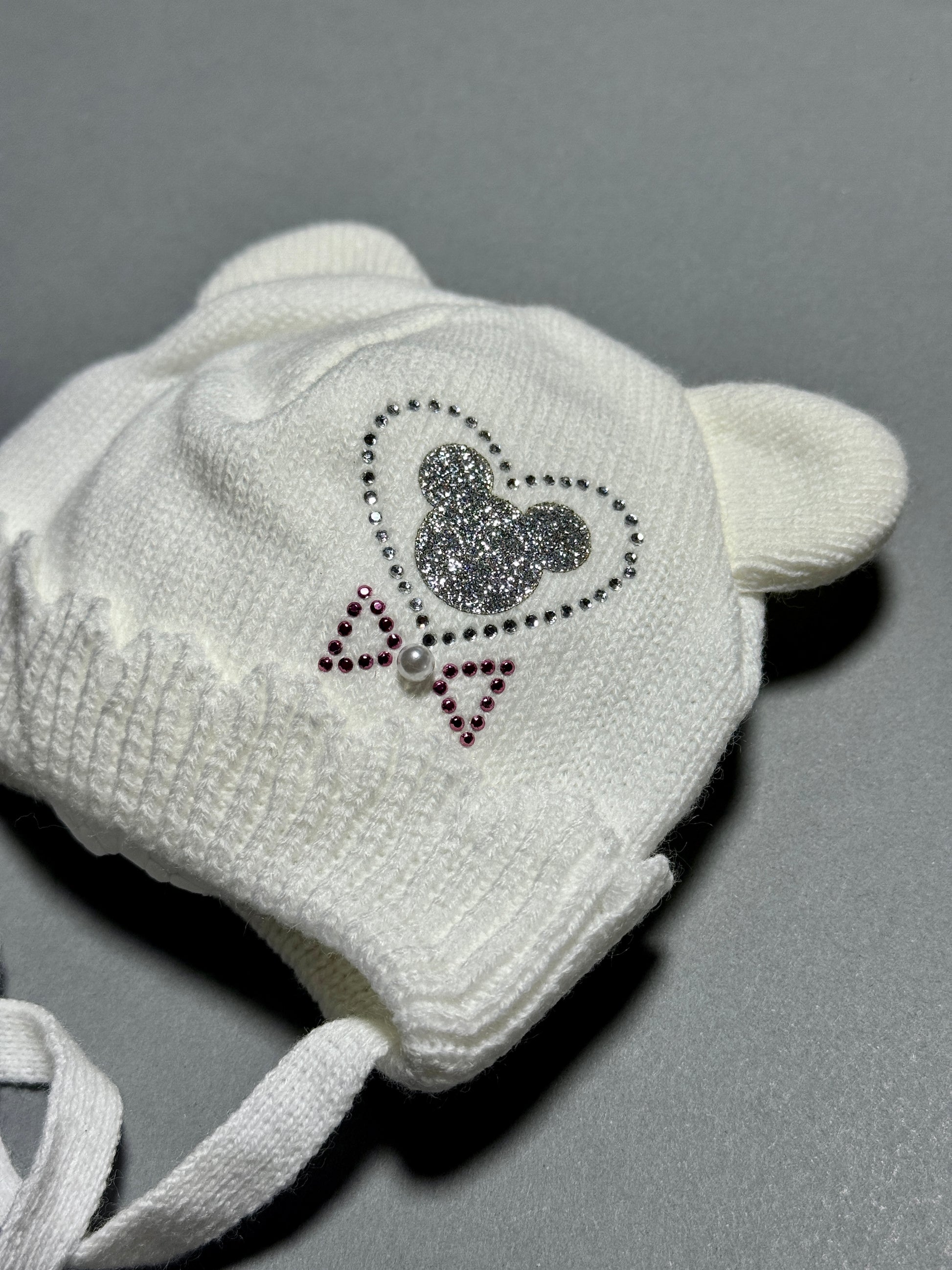 MINNIE LOVE - Fehér Kötős Strasszos Egér Mintás Kötött Lány Sapka