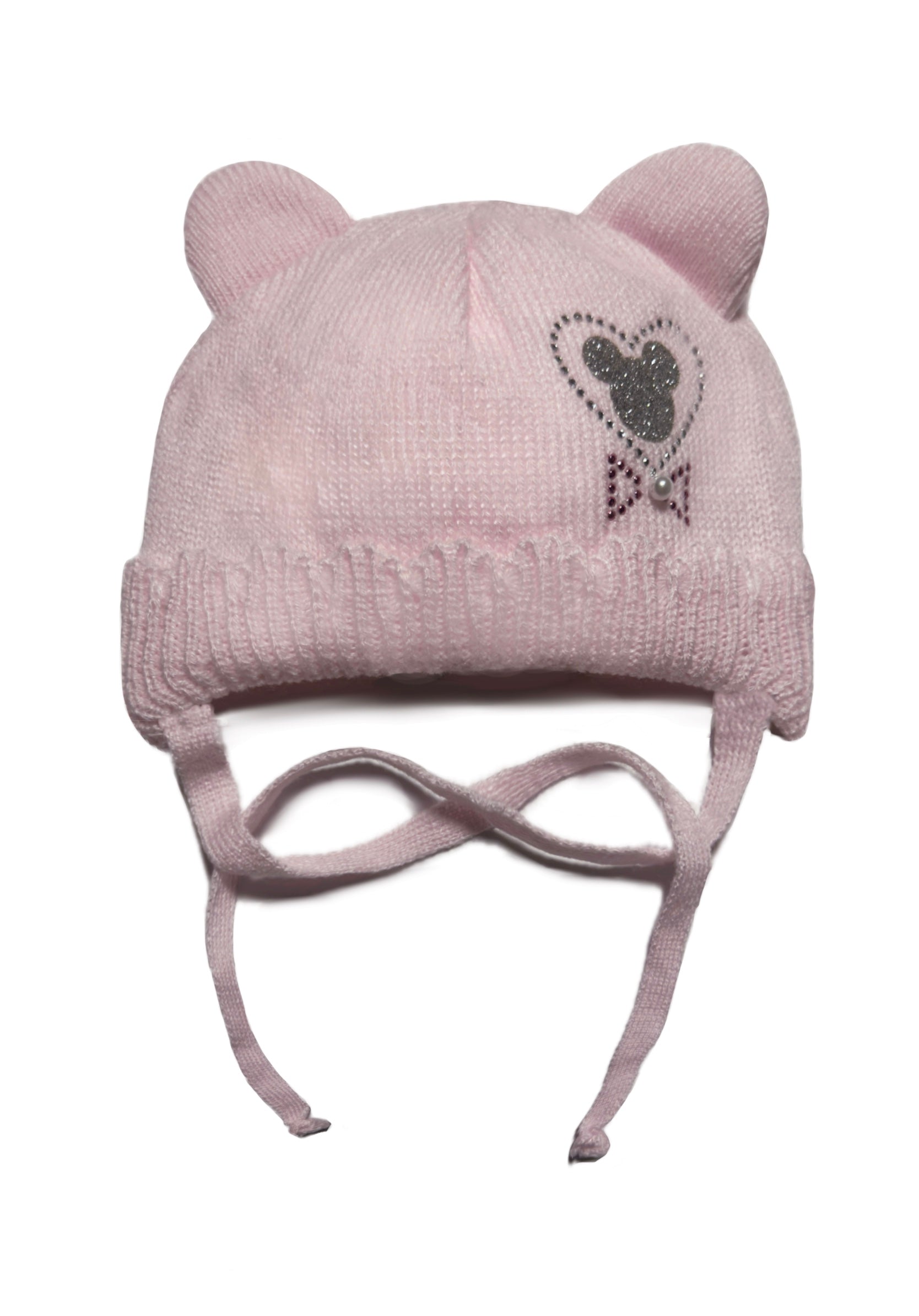 MINNIE LOVE - Púderrózsaszín Kötős Strasszos Egér Mintás Kötött Lány Sapka