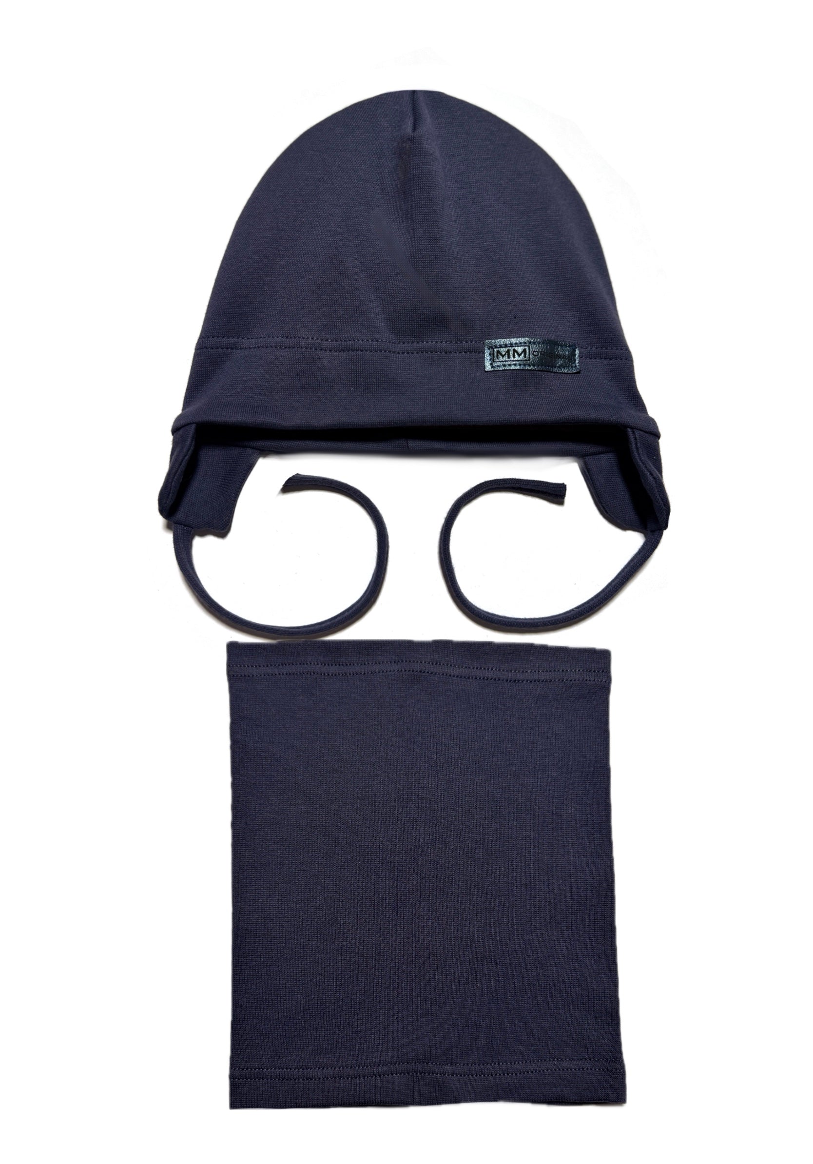 MM ORIGINAL BABY SET - Acélkék Kötős Pamut Fiú Sapka és Csősál Szett