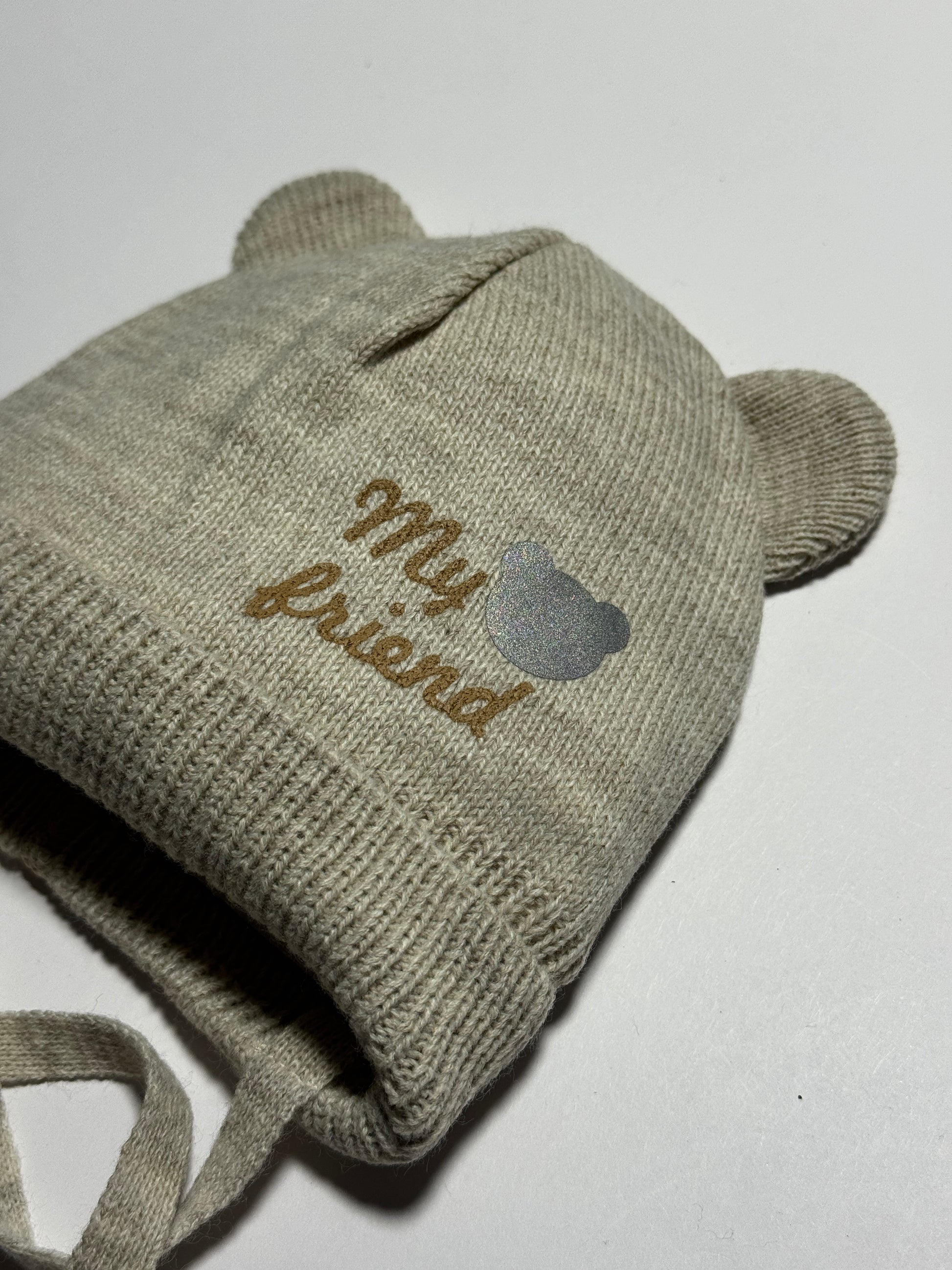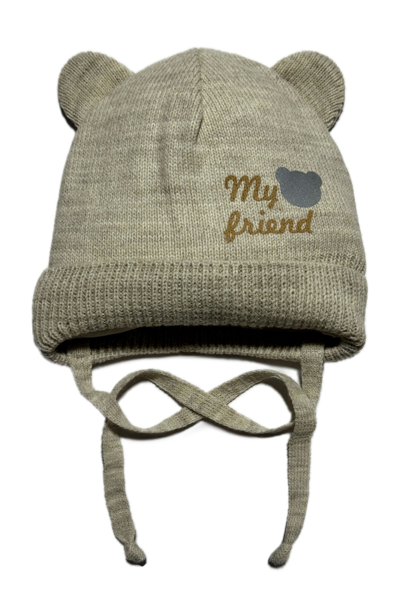 MY BEAR FRIEND - Bézs Kötős Macifüles Fiú Kötött Sapka