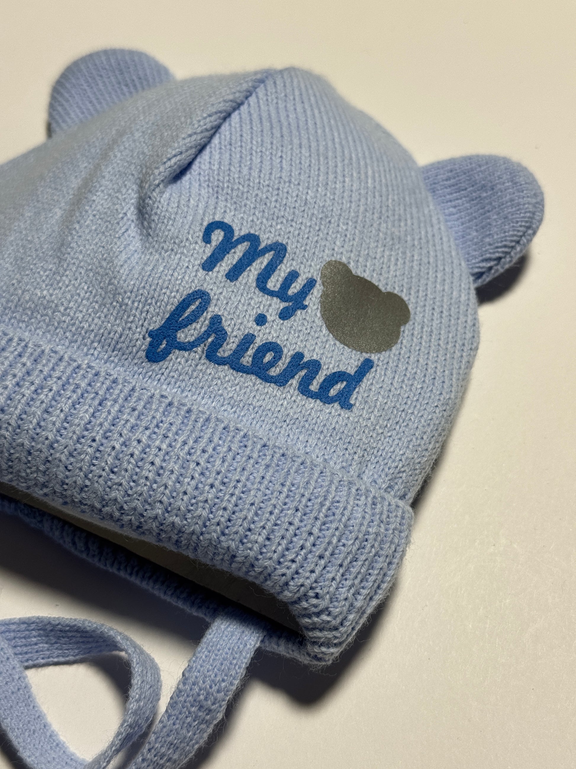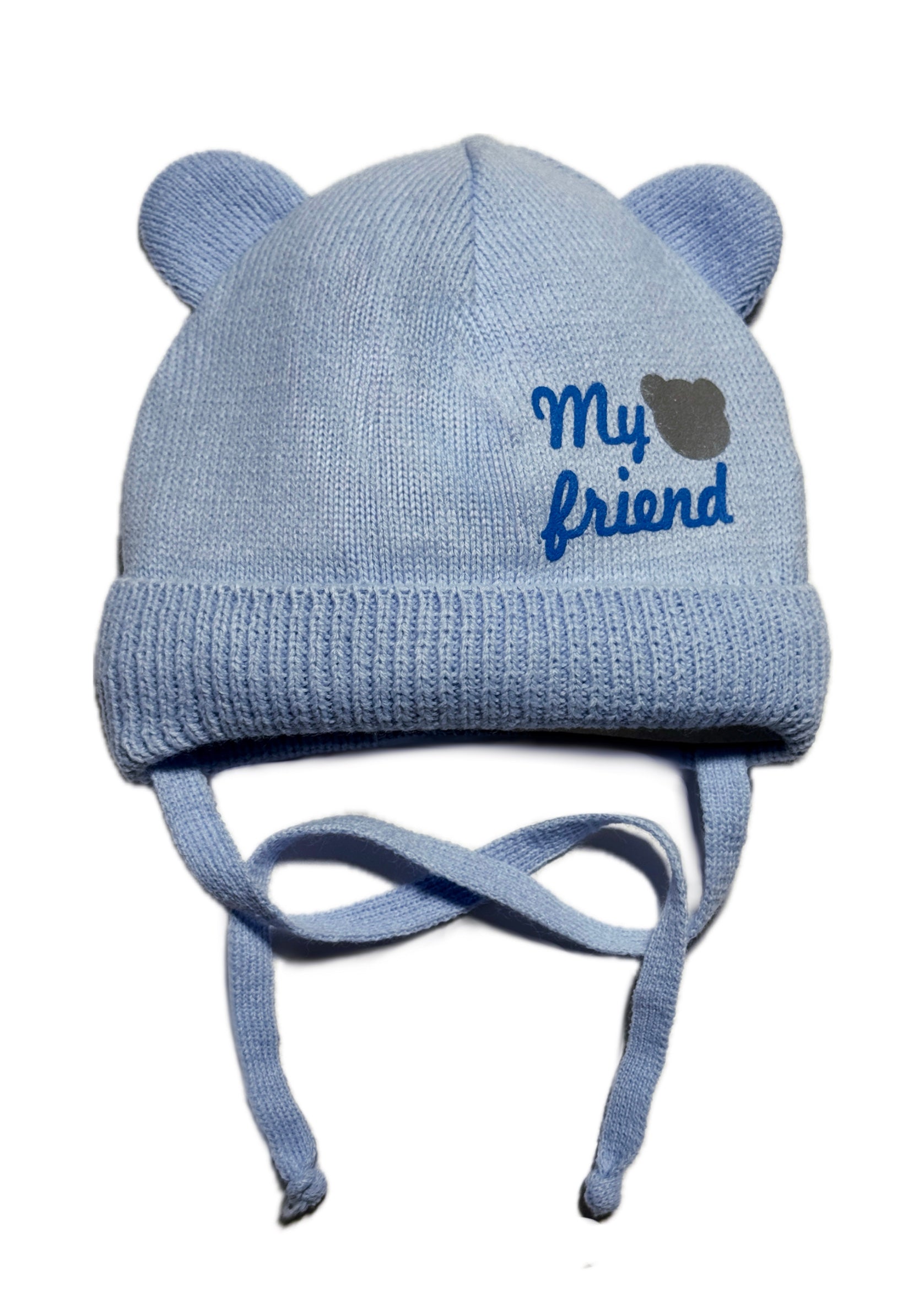 MY BEAR FRIEND - Kék Kötős Macifüles Fiú Kötött Sapka