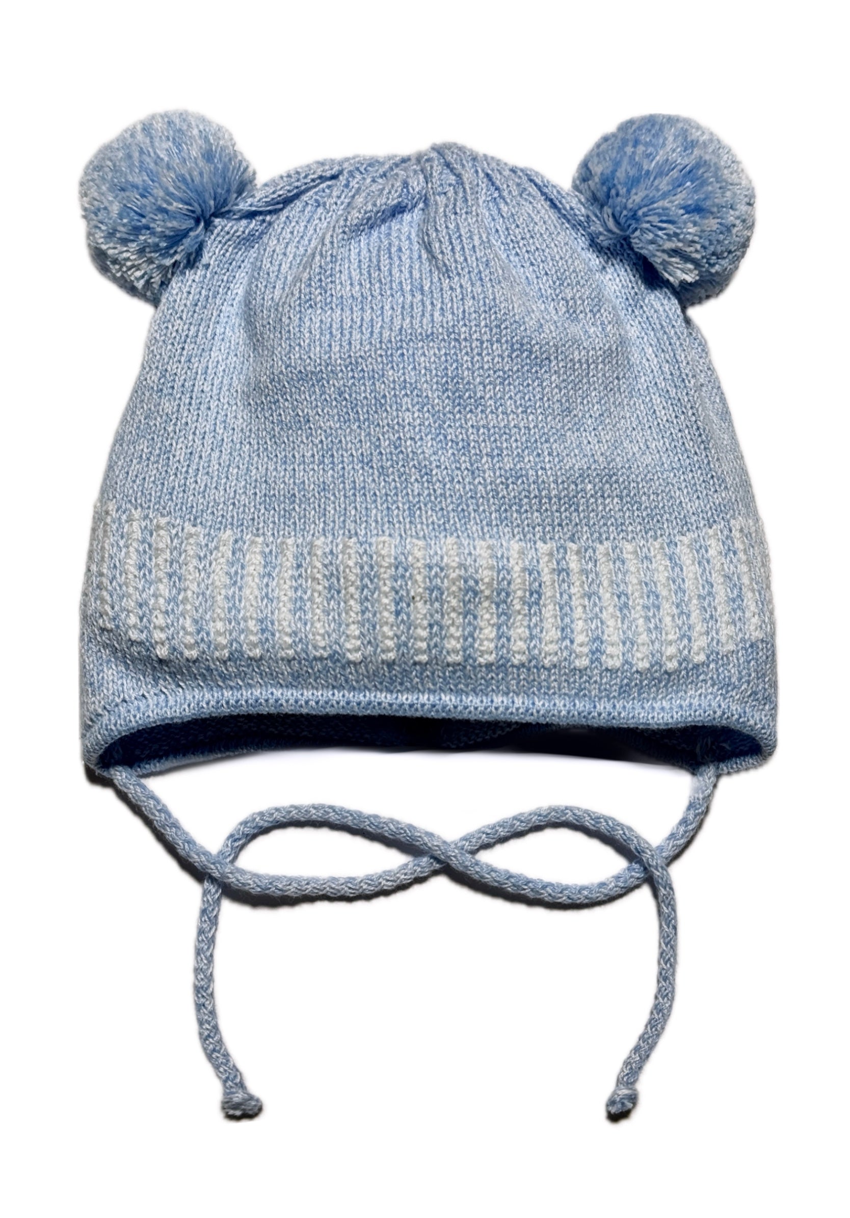 POMPOM BEAR - Kék Dupla Pomopomos Kötős Fiú Kötött Sapka