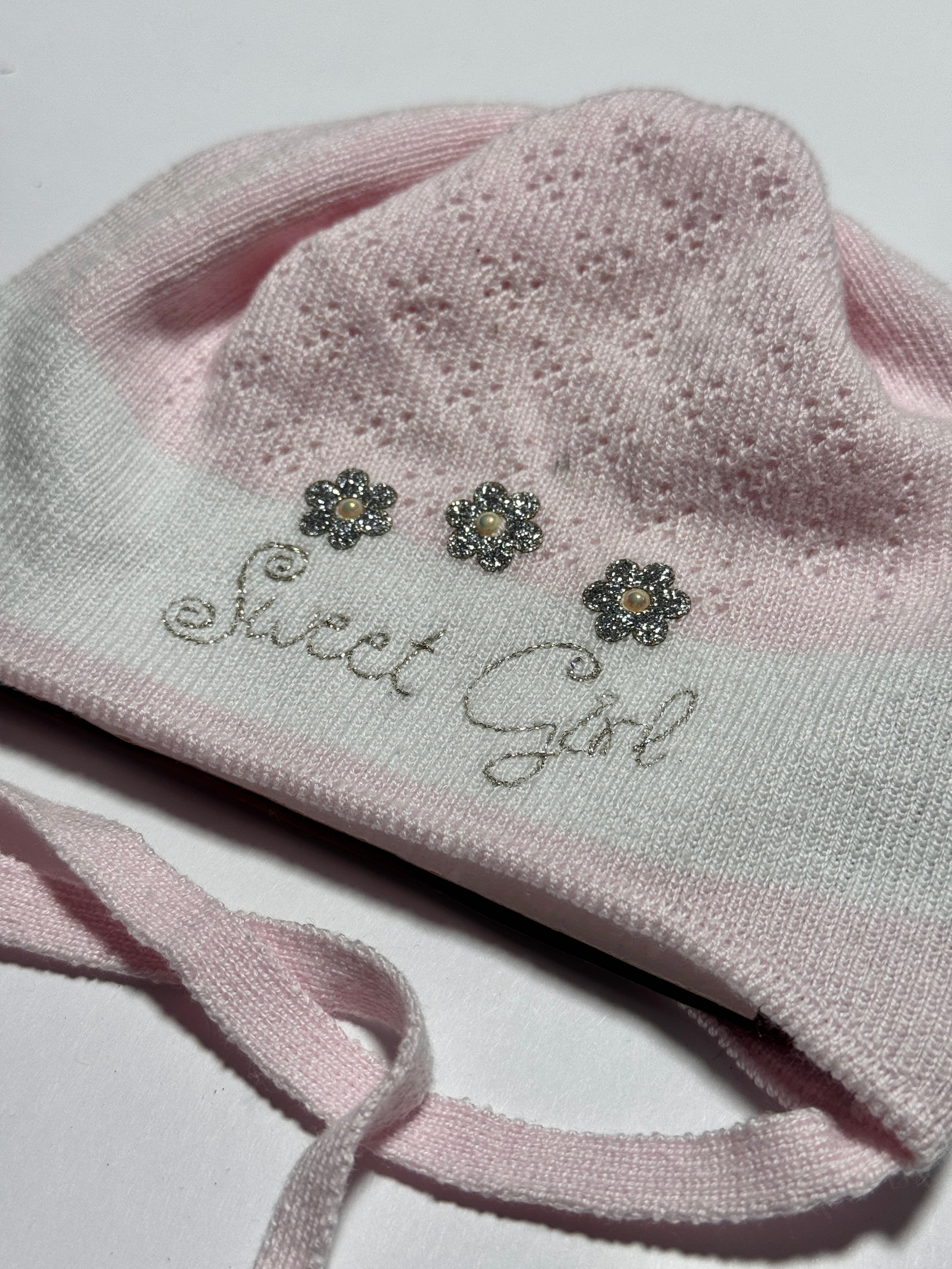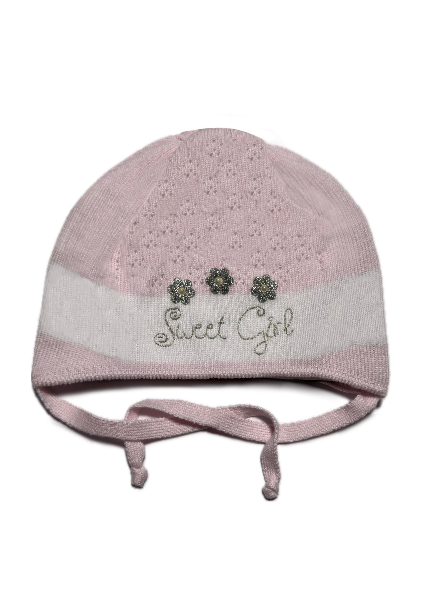 SWEET GIRL - Kötős Halványrózsaszín-Fehér Kötött Lány Sapka